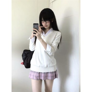 日系jk制服毛衣外套女秋冬疊穿校供感學院風長袖寬松白色針織開衫
