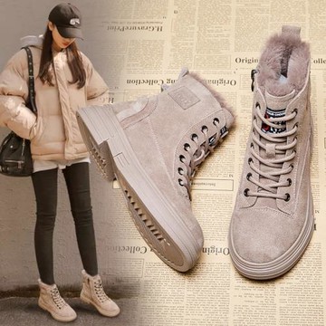 香港皮毛一體加絨加厚棉鞋馬丁靴