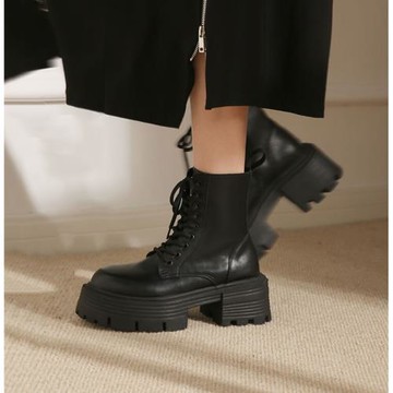 notdetailed原創秋季新品 彈簧馬丁靴厚底系帶女短靴情侶款