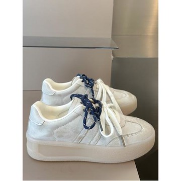 網紅同款厚底小白鞋女2025春季新款圓頭系帶舒適輕便休閑運動板鞋