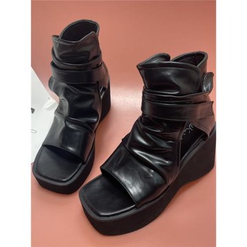 厚底個性鏤空透氣防水臺魚嘴涼鞋女2025年夏新款高幫復古羅馬涼靴