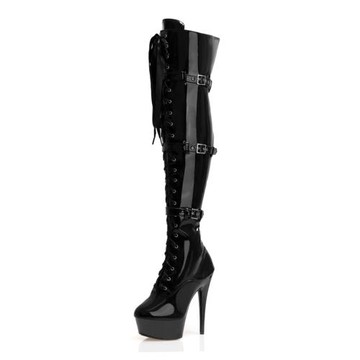 皮帶扣歐美超高跟厚底細跟20cm鋼管舞過膝靴夜店模特防水臺17cm女