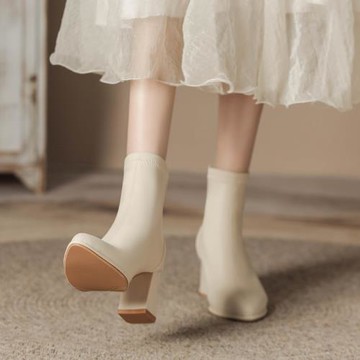 日本產 柔軟細膩羊反絨短靴 圓柱中跟靴 絨面大頭靴