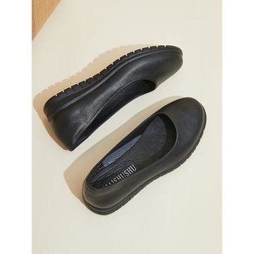 圓頭厚底女皮鞋工作鞋軟底辦公室酒店服務員工鞋黑色單鞋平底女鞋