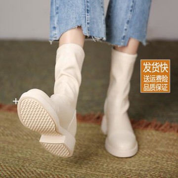 【黎莎】內增高短靴白色馬丁靴女2025秋冬中筒靴粗跟韓版彈力靴子
