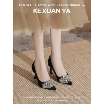 【可軒雅】水鉆方扣高跟鞋女細跟2025新款設計感絨面女士尖頭單鞋
