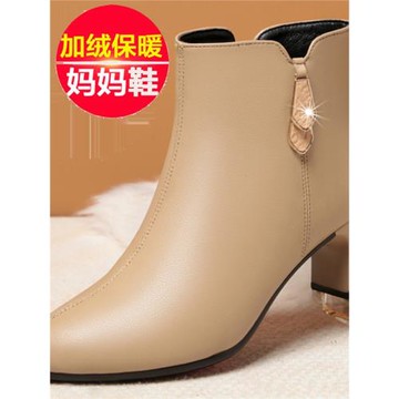 媽媽鞋棉鞋女鞋秋冬中年防滑中跟皮鞋加絨保暖中老年真皮軟底短靴