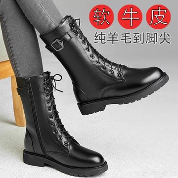 真皮女靴中筒靴冬羊毛棉鞋防滑馬丁靴女棉靴平跟英倫風惠州短靴女