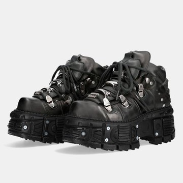 復古西班牙坦克底金屬高幫鞋厚底小皮鞋暗黑朋克松糕底街拍單鞋女
