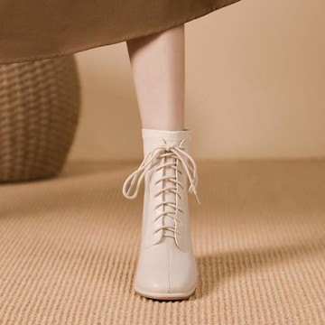 芯太軟 氣質立體單結粗跟短靴 象牙 (8L2951)