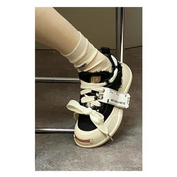 檀健次同款帆布鞋女2023新款學院風百搭小眾原創開口笑板鞋ins潮