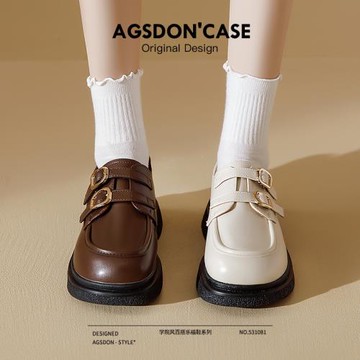 棕色小皮鞋女2026新款春季厚底白色樂福鞋配裙子百搭日系法式單鞋
