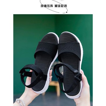 2025年夏季新款女鞋軟底舒適中年媽媽涼鞋女士平底魔術貼羅馬涼鞋