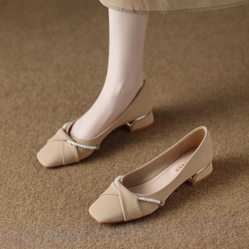 羊皮版~絕美淺口低跟2025秋季時尚氣質配裙子春秋不累腳小跟單鞋