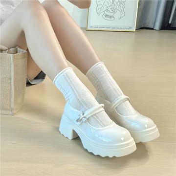白色瑪麗珍鞋女2024新款夏季法式復古小皮鞋厚底粗跟jk單鞋子春秋