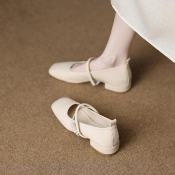 晚晚風溫柔鞋真皮仙女風文藝單鞋復古綁帶軟妹鞋中跟漢服鞋子女