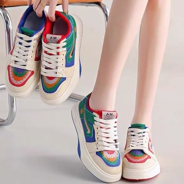 韓國小臟鞋女2025新款蛇皮尾復古內增高粉色星星做舊臟臟小白鞋
