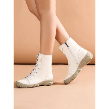 2025新款真皮女靴冬季百搭款帆布鞋短靴英倫風休閑馬丁靴真皮女鞋