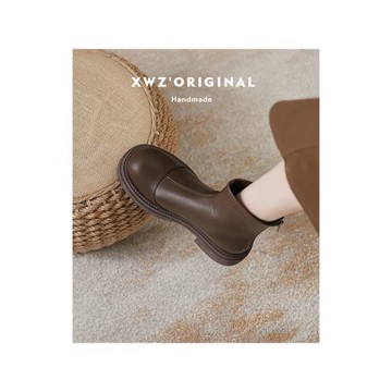 非侈Feichi 真皮圓頭切爾西短靴女 秋英倫風踝裸靴厚底馬丁靴