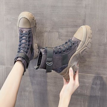 香港2022春秋馬丁靴薄款女jk增高顯瘦配裙子帆布沙漠靴子瘦腿酷鞋