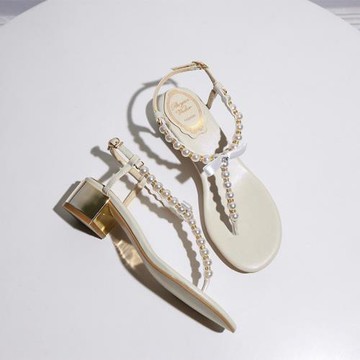 【Ruyan Vuicr】rc粗跟中跟夾趾羅馬鞋夾腳人字拖鞋女珍珠涼鞋女