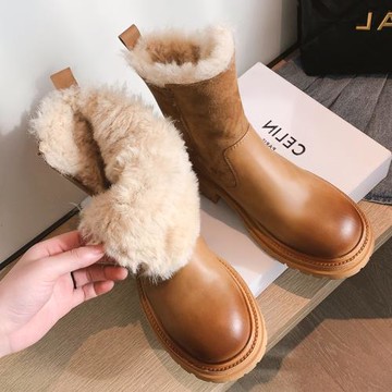 2025新款皮毛一體冬靴東北保暖大棉鞋真皮厚底防滑馬丁靴加絨短靴