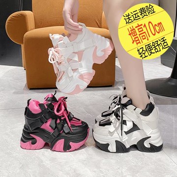 小個子10cm內增高老爹鞋女秋季新款ins潮拼色厚底松糕休閑運動鞋