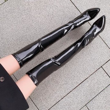 漆皮過膝長靴女2025秋冬新款彈力尖頭高跟顯瘦長筒過膝靴大碼4143