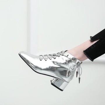 金色銀色漆皮粗跟馬丁靴走秀舞臺模特比賽小碼短靴T臺小黑靴踝靴
