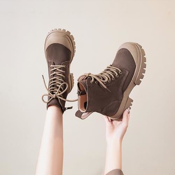 2025新款真皮女靴冬季百搭款帆布鞋短靴英倫風休閑馬丁靴真皮女鞋
