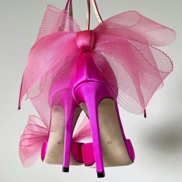 蝴蝶結緞面裸跟鞋