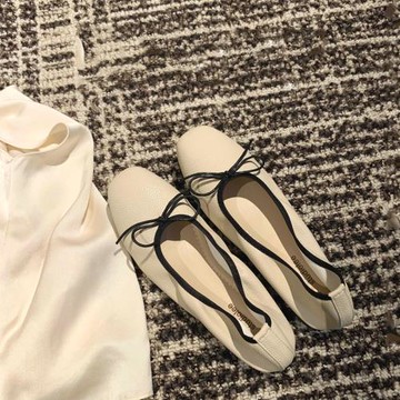 大碼女鞋41一43瓢鞋平底小香風粉色溫柔蝴蝶結方頭軟底芭蕾單鞋女