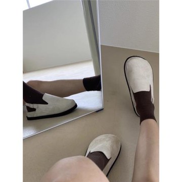 法式復古芭蕾舞鞋 一腳蹬平底單鞋 細膩絨面奶奶鞋