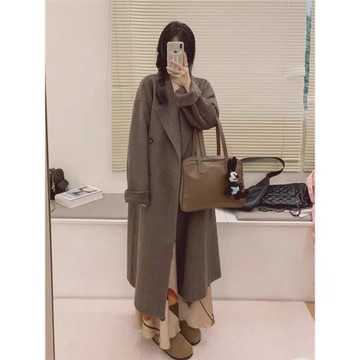 中長款雙面羊毛大衣女2025冬季高級感韓系寬松廓形毛呢外套小個子