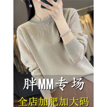 大碼秋裝女胖mm半高領毛衣200斤寬松針織上衣薄款內搭羊毛打底衫
