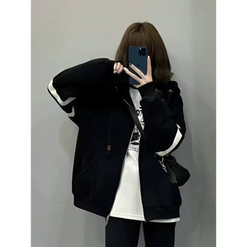 黑色美式慵懶拉鏈開衫連帽衛衣外套女春秋2025新款爆款寬松小個子