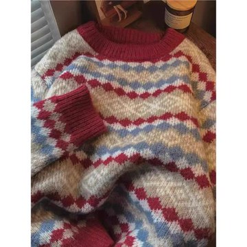 圓領美式復古秋冬款長袖套頭毛衣