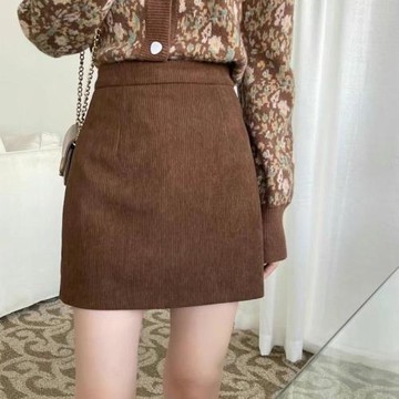 大碼咖色燈芯絨半身裙遮胯高腰a字裙秋ins風胖mm顯瘦a字包臀短裙