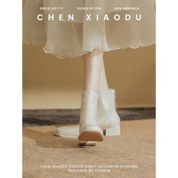 法式炸街小短靴女瘦瘦靴秋冬白色粗跟靴子低跟配裙子小高跟及踝靴