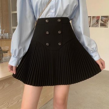 VIVILIAN學院風高腰顯瘦百褶A字裙