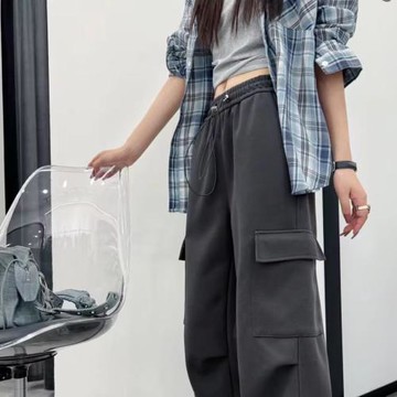 工裝褲女秋季新款高腰松緊寬松顯瘦百搭休閑抽繩束腳哈倫褲0.6