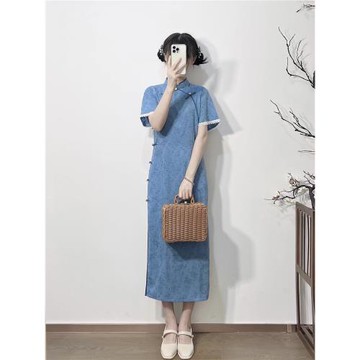 2025年新款古法旗袍復古民國風年輕款文藝少女素雅提花長款連衣裙