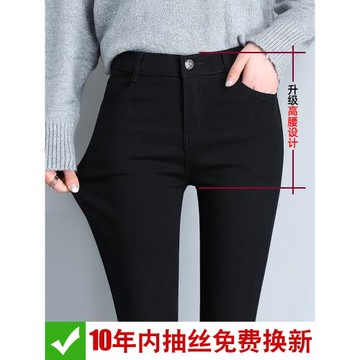 (免運)高腰黑色牛仔褲女2025秋冬新款彈力緊身顯瘦加絨九分小腳長褲子