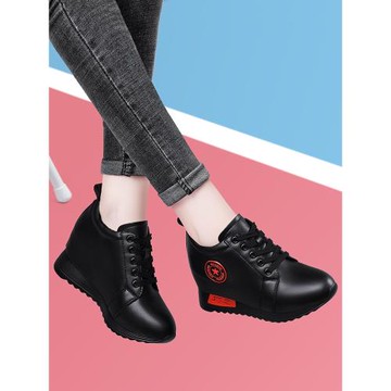 內增高運動鞋女小個子真皮單鞋春秋休閑女鞋軟底旅游鞋坡跟厚底鞋