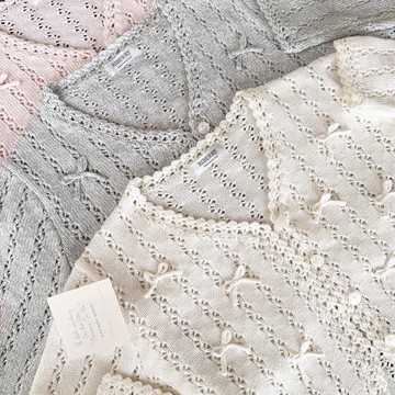 棉腈 純手工鉤邊 蝴蝶結 鏤空 復古甜美 針織開衫 短款 K