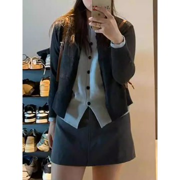 點我下載高級感灰色假兩件針織開衫毛衣秋季季大碼胖mm超好看寬松長袖上衣