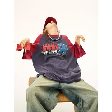 美式潮牌拼接運動復古賽車服短袖T恤hiphop寬松炸街情侶大地男