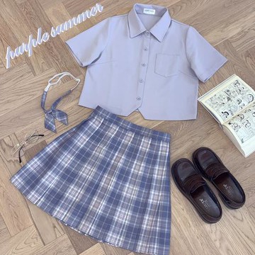 春日部【捕夢蝶】現貨 原創格裙少女jk制服正統淺紫色百褶短裙