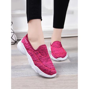 夏季大尺碼情侶鞋 一腳蹬透氣潮流運動網面不抽繩 休閒懶人鞋 輕便健步防滑媽媽鞋