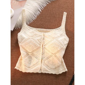 鏤空針織吊帶背心女夏外穿設計感小眾甜辣妹獨特別致短款無袖上衣
